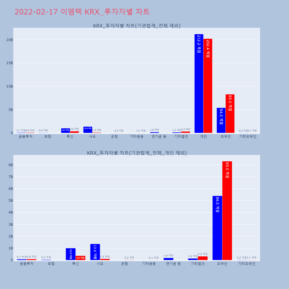 | 외국인 | 68,249 | 58,772 | -9,477 | 692,930,400 | 589,007,890 | -103,922,510 |