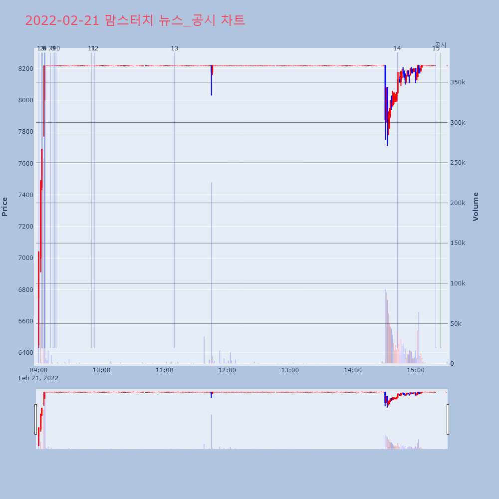 | 9 | [특징주] '자발적 상폐 확정' 맘스터치, 상한가 급등[특징주] '자발적 상폐 확정' 맘스터치, 상한가 급등 | 연합뉴스 | 맘스터치 | 2022-02-21 09:15:03 |