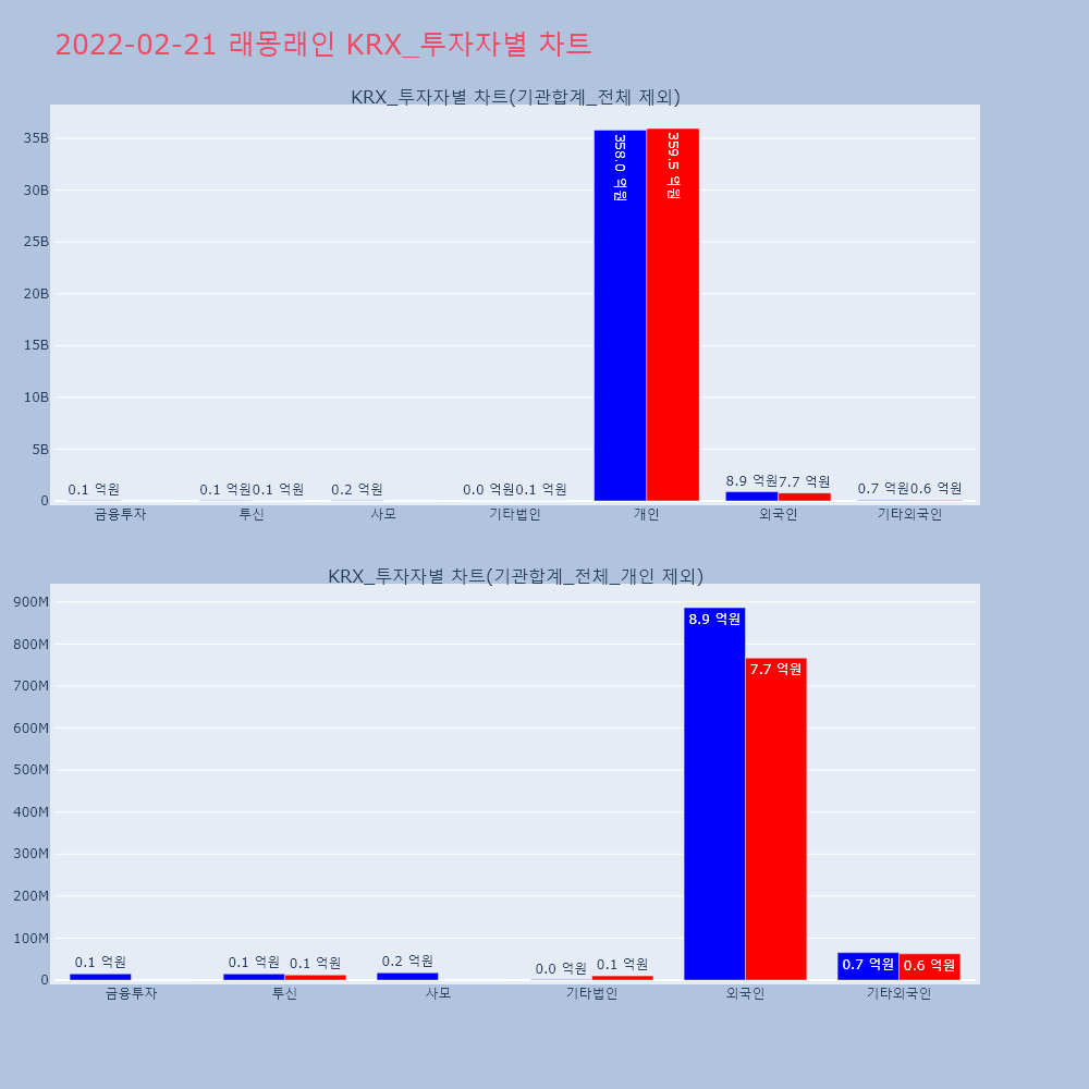 | 투자기관 | 거래량_매도 | 거래량_매수 | 거래량_순매수 | 거래대금_매도 | 거래대금_매수 | 거래대금_순매수 |
