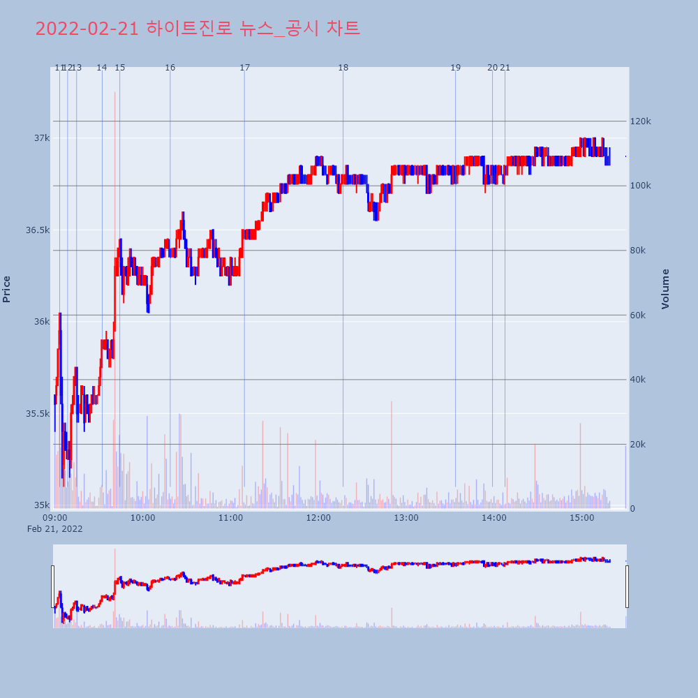 | 16 | [장중수급포착] 하이트진로, 외국인/기관 동시 순매수… 주가 +3.12% [서울=뉴스핌] 로보뉴스 = 21일 10시 15분 현재 | 뉴스핌 | 하이트진로 | 2022-02-21 10:18:45 |