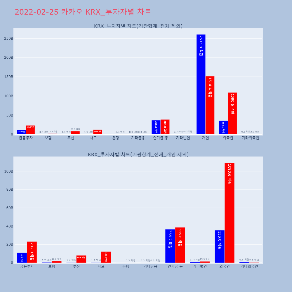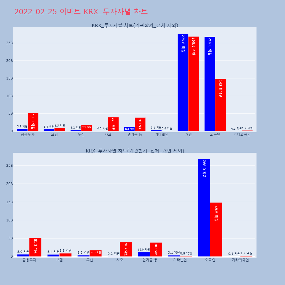 | 개인 | 736,135 | 511,933 | -224,202 | 25,092,802,450 | 17,429,550,200 | -7,663,252,250 |