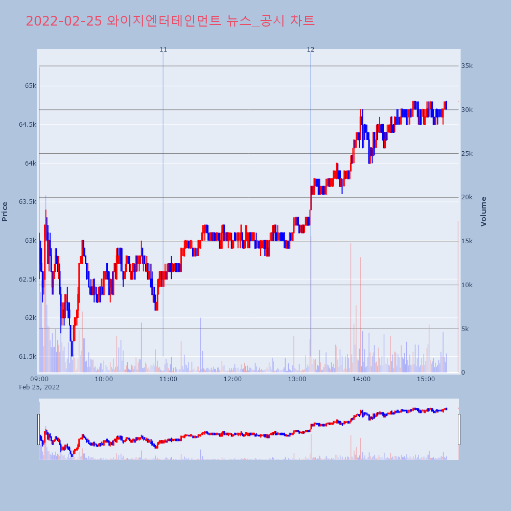 12 | 와이지엔터테인먼트(122870) 소폭 상승세 +4.26% 제목 : 와이지엔터테인먼트(122870)소폭 상승세 + | 인포스탁 | 와이지엔터테인먼트 | 2022-02-25 13:12:39 |