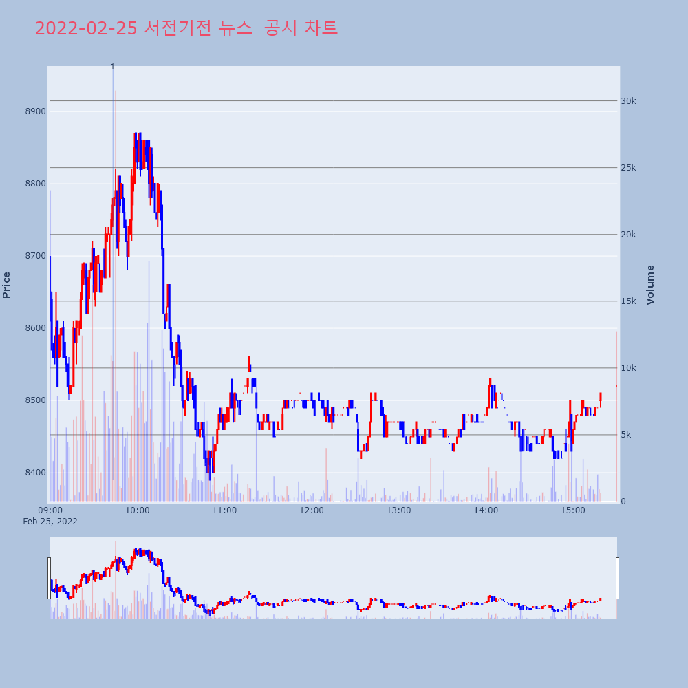2022-02-25 16:06:00 | 20220225800978 | 매출액또는손익구조30%(대규모법인은15%)이상변경 |