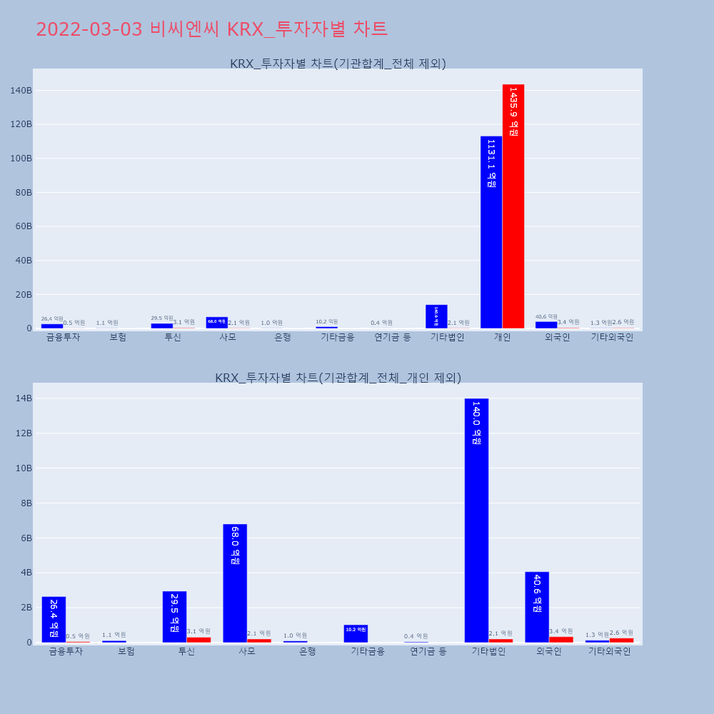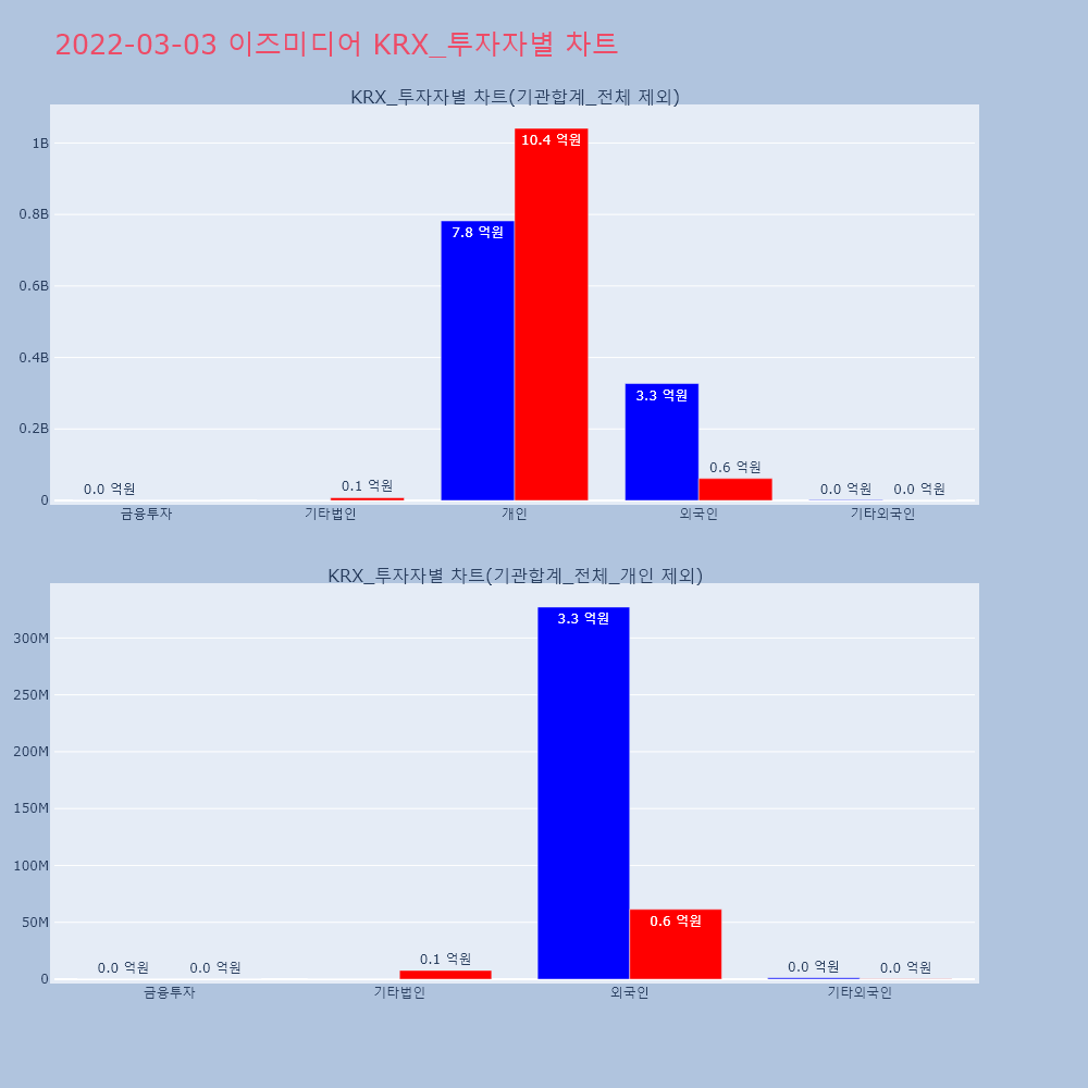 | 투자기관 | 거래량_매도 | 거래량_매수 | 거래량_순매수 | 거래대금_매도 | 거래대금_매수 | 거래대금_순매수 |