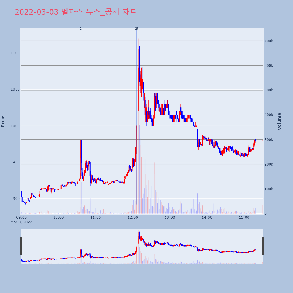 | 3 | 멜파스, +11.61% VI 발동멜파스(096640)가 VI가 발동했다. 전일 대비 1 | 조선경제 | 멜파스 | 2022-03-03 12:06:57 |