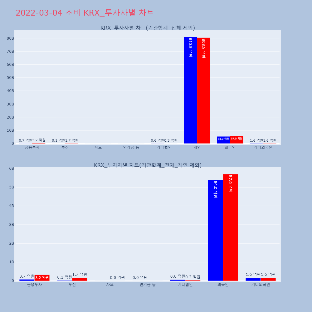 | 투자기관 | 거래량_매도 | 거래량_매수 | 거래량_순매수 | 거래대금_매도 | 거래대금_매수 | 거래대금_순매수 |