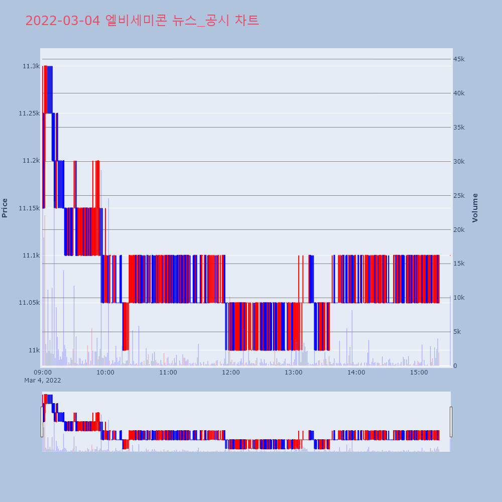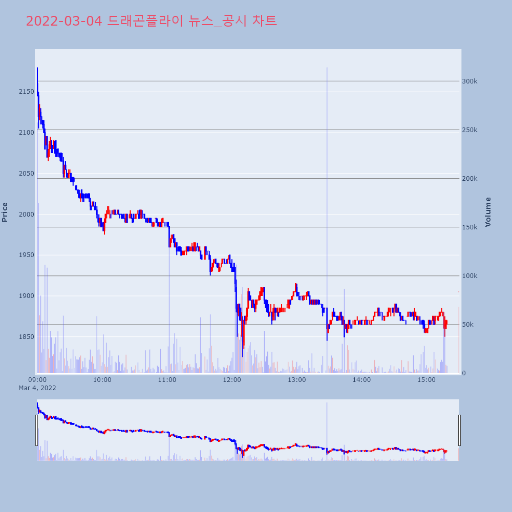 | 2022-03-03 17:14:00 | 20220303900908 | 매출액또는손익구조30%(대규모법인은15%)이상변동 |