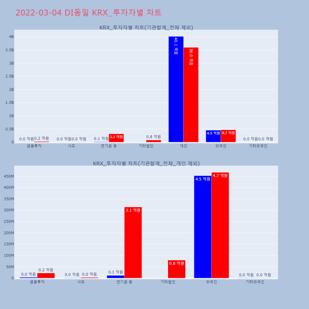 | 투자기관 | 거래량_매도 | 거래량_매수 | 거래량_순매수 | 거래대금_매도 | 거래대금_매수 | 거래대금_순매수 |