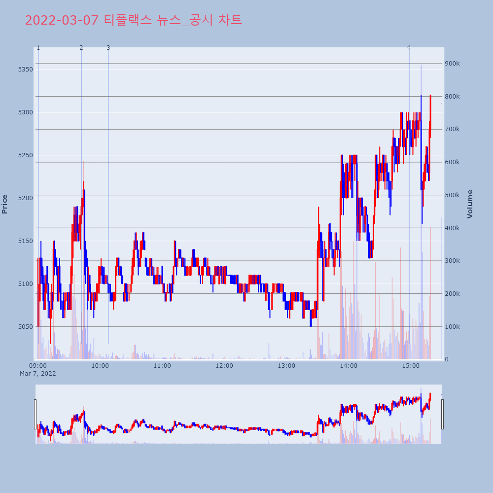 | 3 | [리포트 브리핑]티플랙스, '지정학적 리스크에 따른 수혜예상' 목표가 6,50[서울=뉴스핌] 로보뉴스 = 상상인증권에서 07일 티플 | 뉴스핌 | 티플랙스 | 2022-03-07 10:08:11 |