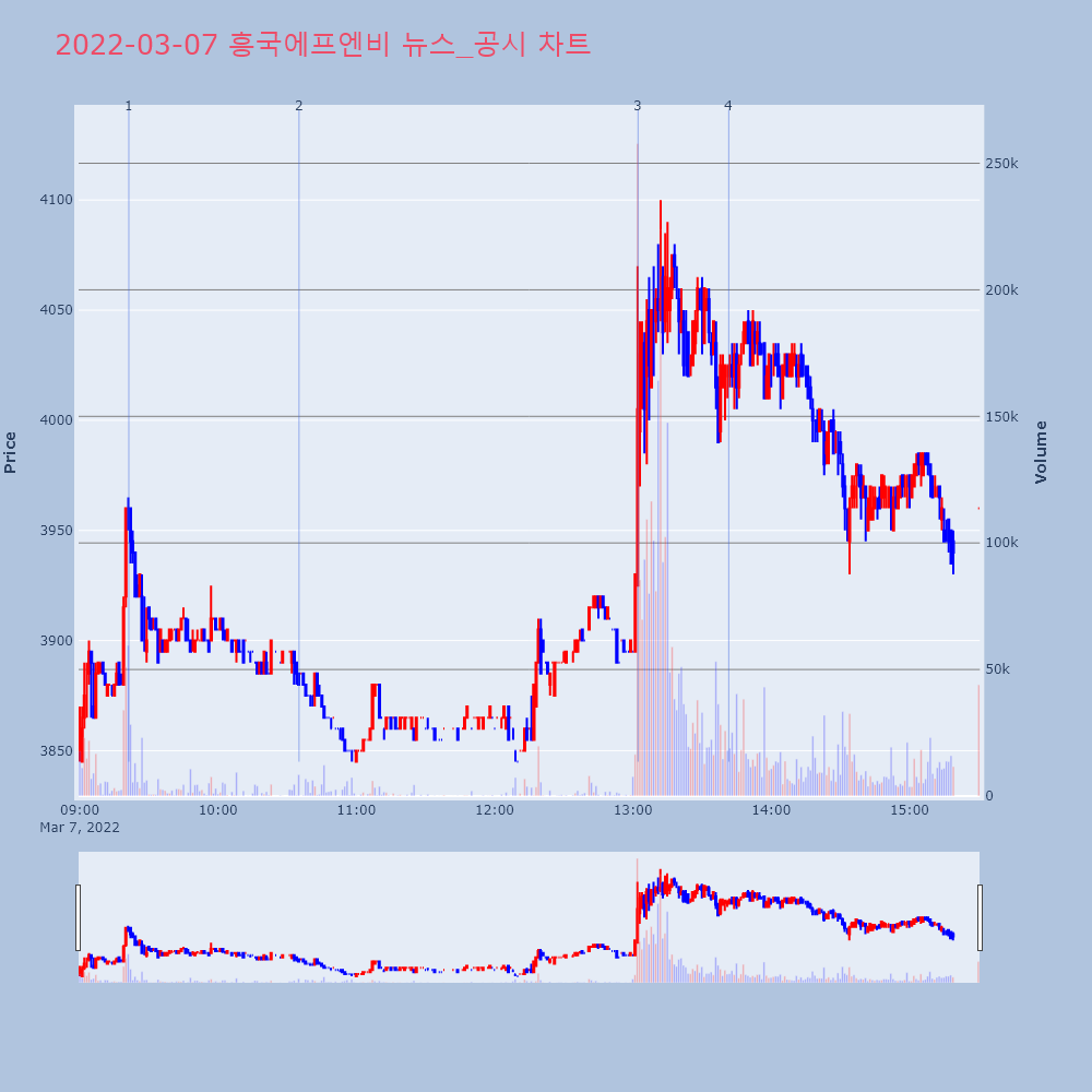| 4 | [특징주] 흥국에프엔비, 올해 실적 성장 전망 분석에 강세 제목 : [특징주] 흥국에프엔비, 올해 실적 성장 전망 | 인포스탁 | 흥국에프엔비 | 2022-03-07 13:41:33 |