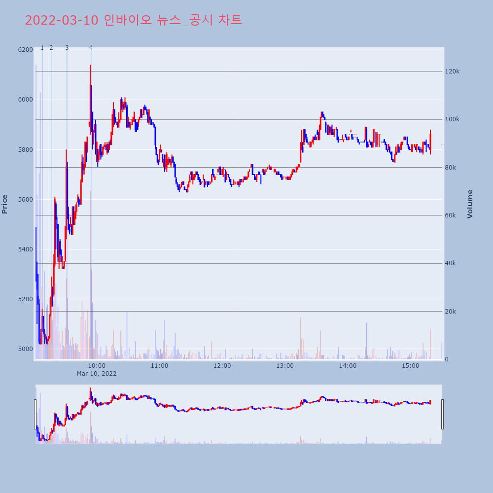 | 1 | [이시각 하한가] 인바이오(▼2150) - 10일 오전 9시5분[이투데이/e2BOT 기자(e2bot@etoday.co | 이투데이 | 인바이오 | 2022-03-10 09:08:02 |