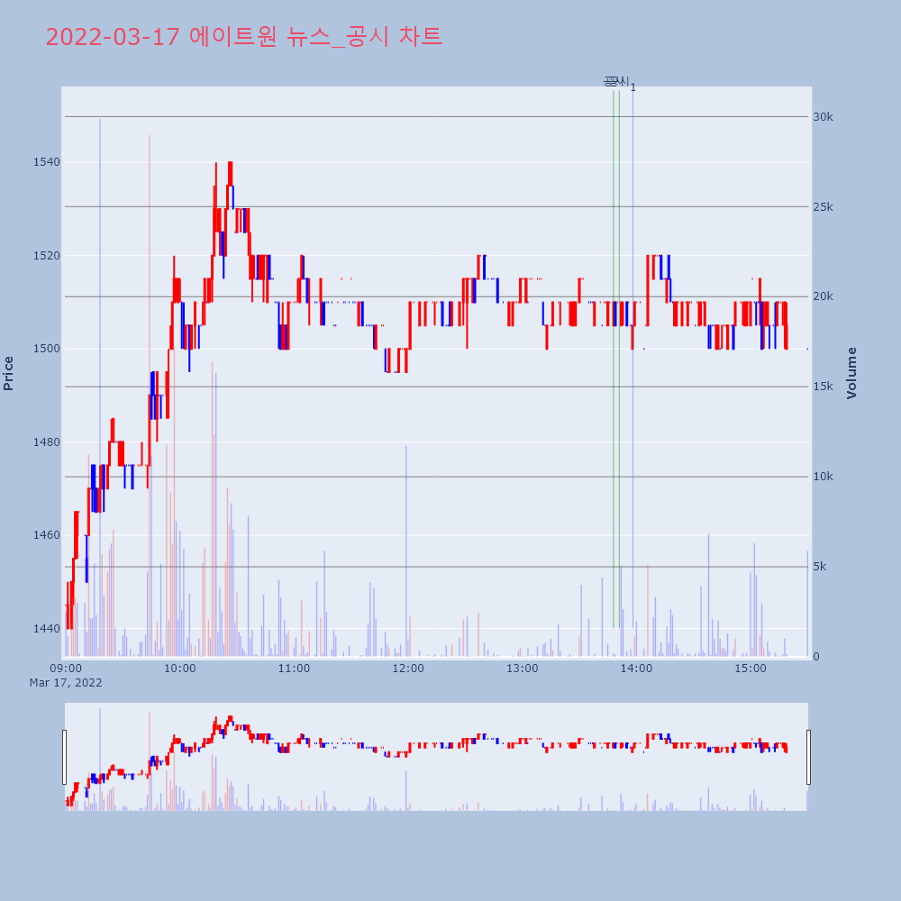 | 2022-03-17 16:07:00 | 20220317900909 | 단일판매ㆍ공급계약체결 |