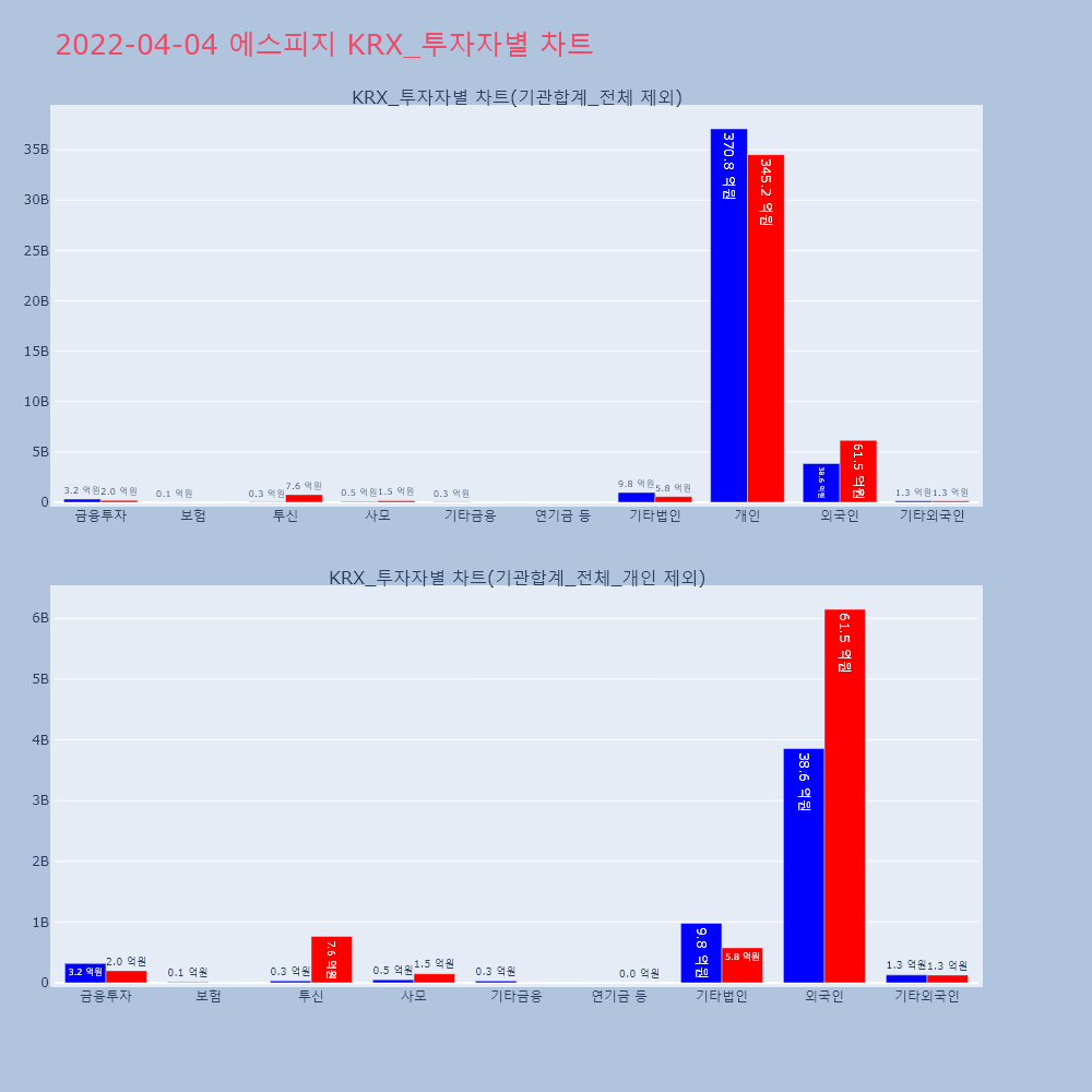 | 투자기관 | 거래량_매도 | 거래량_매수 | 거래량_순매수 | 거래대금_매도 | 거래대금_매수 | 거래대금_순매수 |