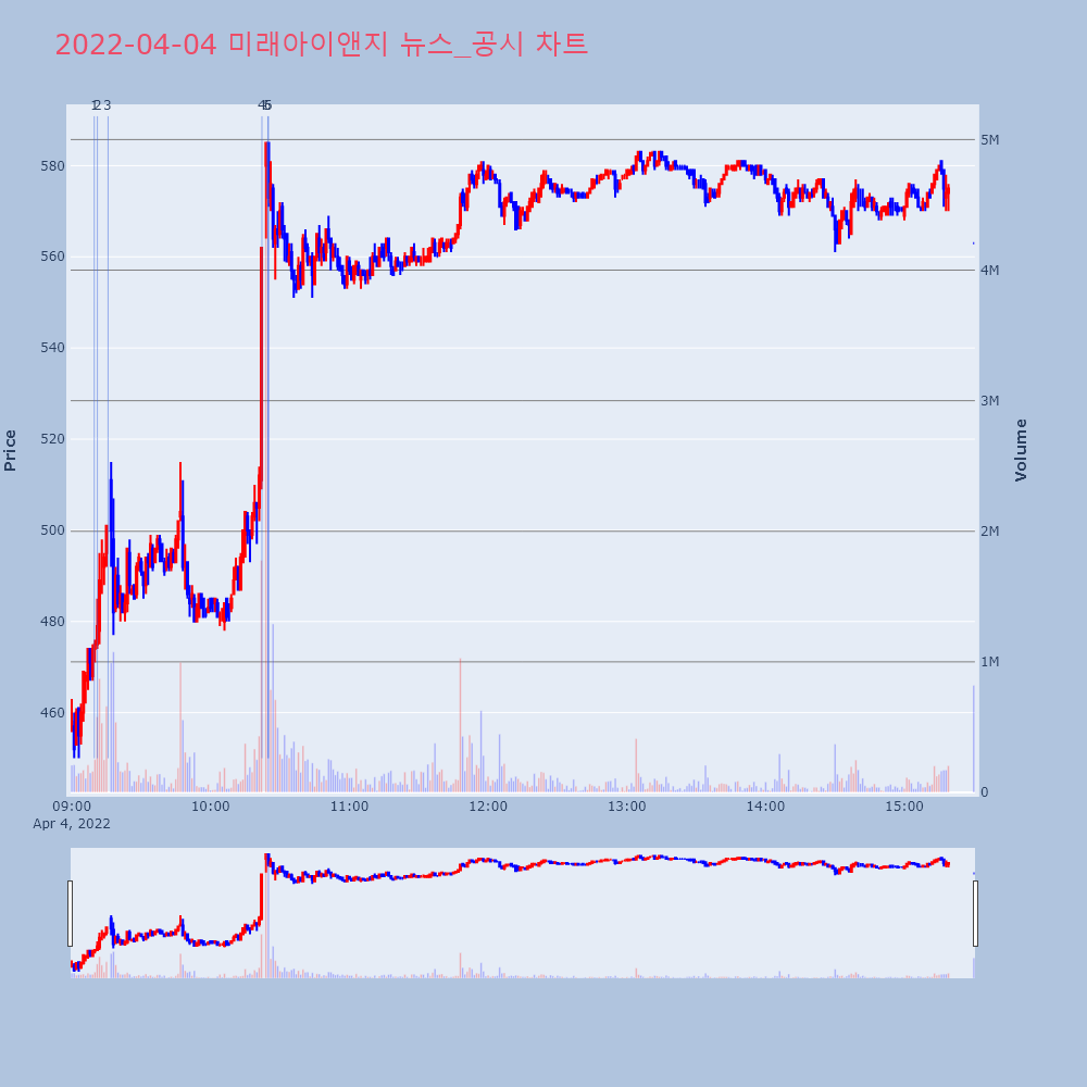 | 4 | [특징주] 미래아이앤지, 쌍방울·비비안 쌍용차 인수전 참여 상승..지분 부[파이낸셜뉴스] 최근 쌍방울그룹이 컨소시엄을 구성해 쌍 | 파이낸셜 | 미래아이앤지 | 2022-04-04 10:22:13 |