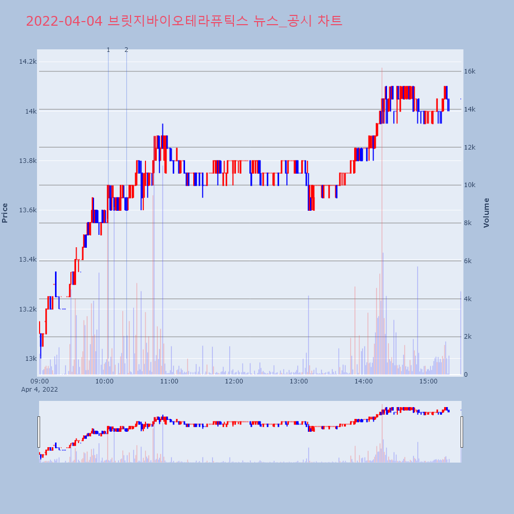 | 2 | [장중수급포착] 브릿지바이오테라퓨틱스, 외국인 5일 연속 순매수행진... [서울=뉴스핌] 로보뉴스 = 04일 10시 15분 현재 | 뉴스핌 | 브릿지바이오테라퓨틱스 | 2022-04-04 10:20:36 |