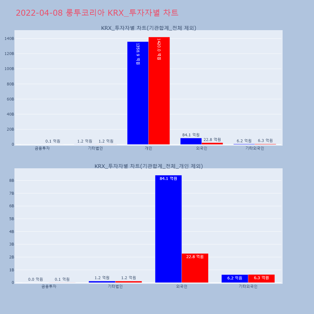 | 투자기관 | 거래량_매도 | 거래량_매수 | 거래량_순매수 | 거래대금_매도 | 거래대금_매수 | 거래대금_순매수 |