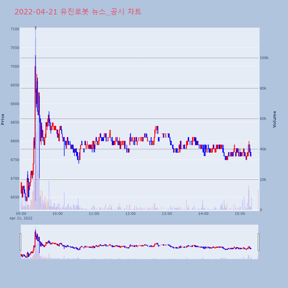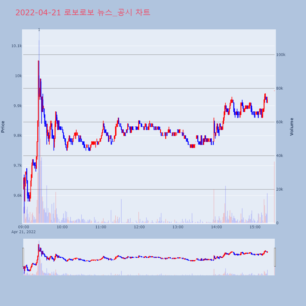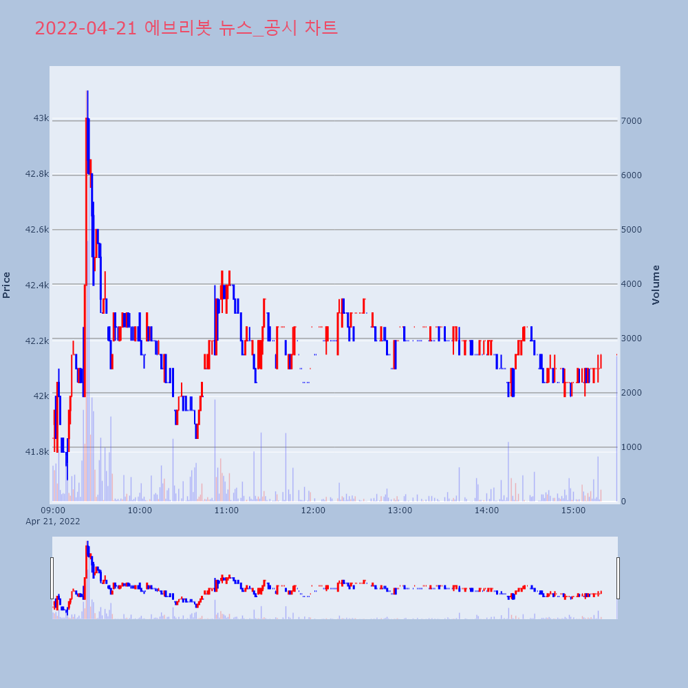 | 8 | [특징주] 휴림로봇, AI 자율주행로봇 'TETRA-DSV' 공개… 장관상 수상에 강제목 : [특징주] 휴림로봇, AI 자율주행로봇 'TE | 인포스탁 | 휴림로봇 | 2022-04-21 10:56:13 |