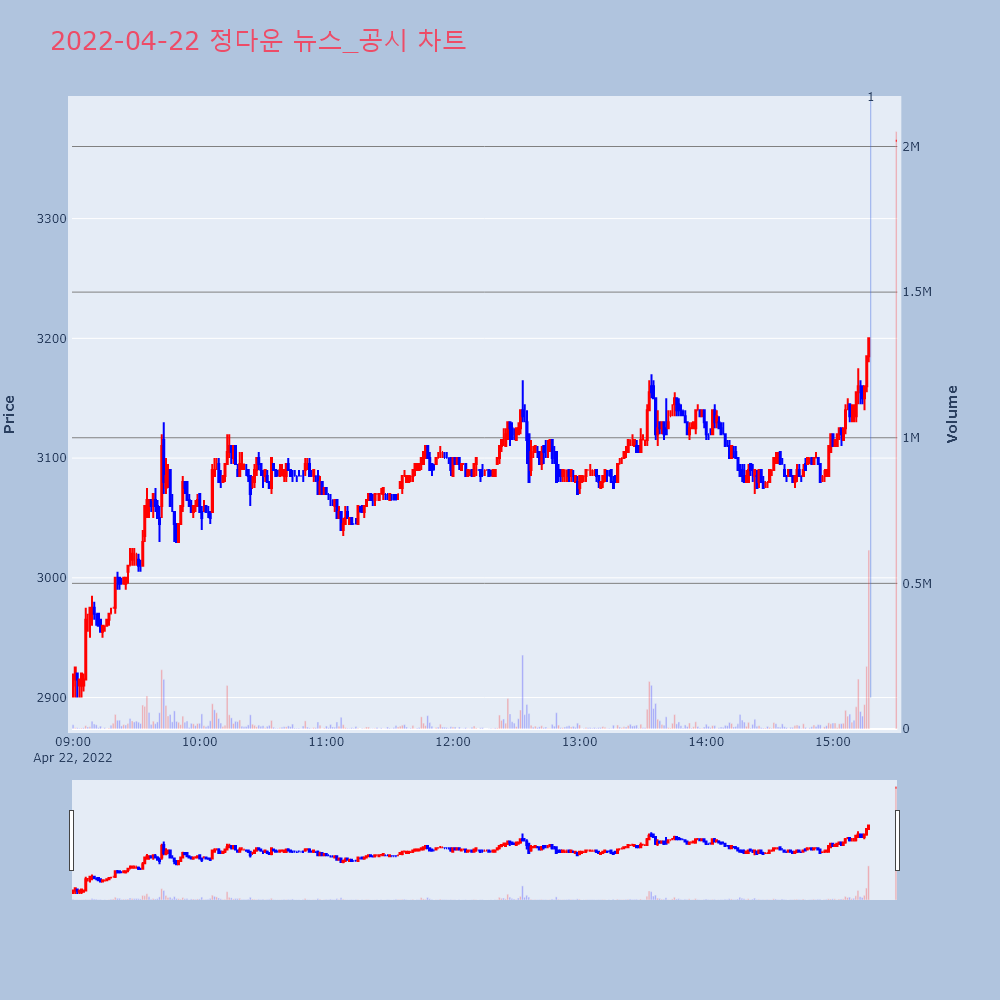 | 1 | 정다운, +8.29% VI 발동정다운(208140)이 VI가 발동했다. 전일 대비 8 | 조선경제 | 정다운 | 2022-04-22 15:17:54 |
