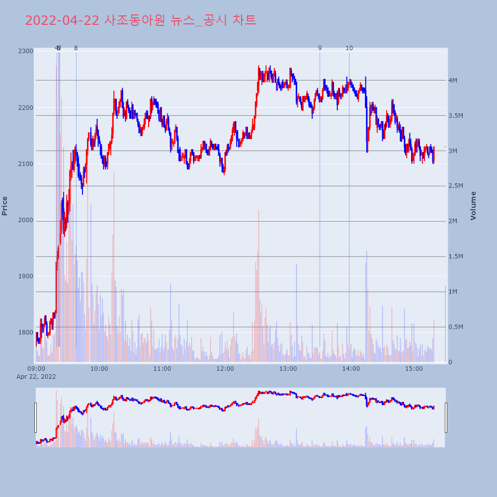 | 4 | [특징주] 케이피에프, 러시아-우크라이나 사태 이후 석탄 발전량 증가 소식제목 : [특징주] 케이피에프, 러시아-우크라이나 사태 | 인포스탁 | 케이피에프 | 2022-04-21 13:17:55 |