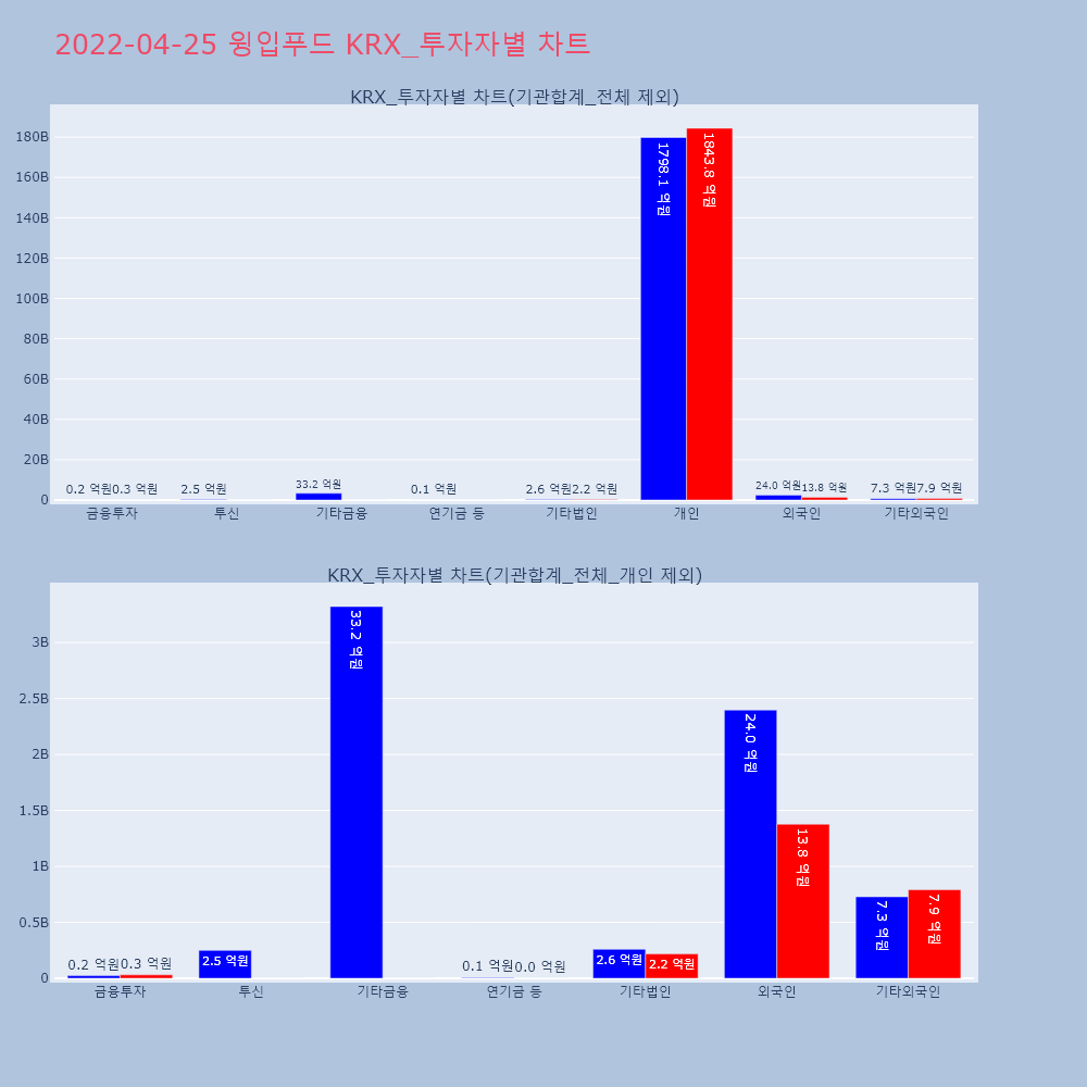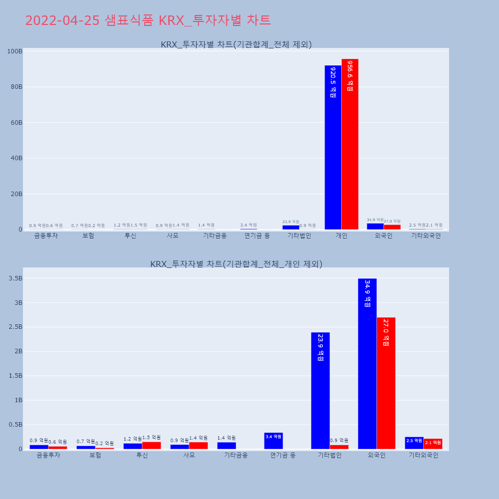 | 투자기관 | 거래량_매도 | 거래량_매수 | 거래량_순매수 | 거래대금_매도 | 거래대금_매수 | 거래대금_순매수 |