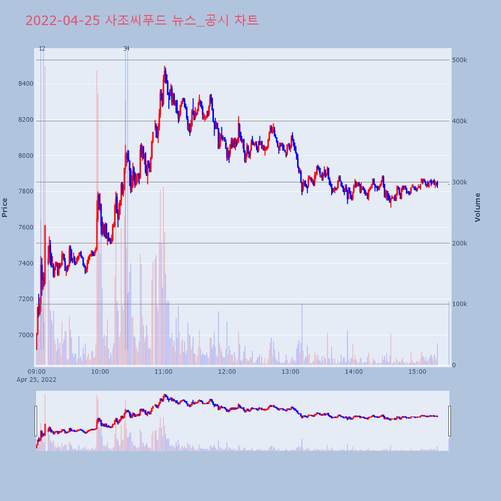 | 2 | [강세 토픽] 음식료 - 수산식품 테마, 사조대림 +27.80%, 사조씨푸드 +5.53[음식료 - 수산식품] 테마가 강세다. 전일 대비 6. | 조선경제 | 사조대림 | 2022-04-25 09:06:32 |