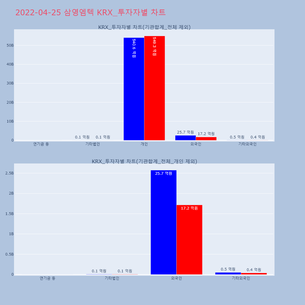 | 외국인 | 1,132,927 | 947,319 | -185,608 | 9,722,003,980 | 8,105,453,600 | -1,616,550,380 |