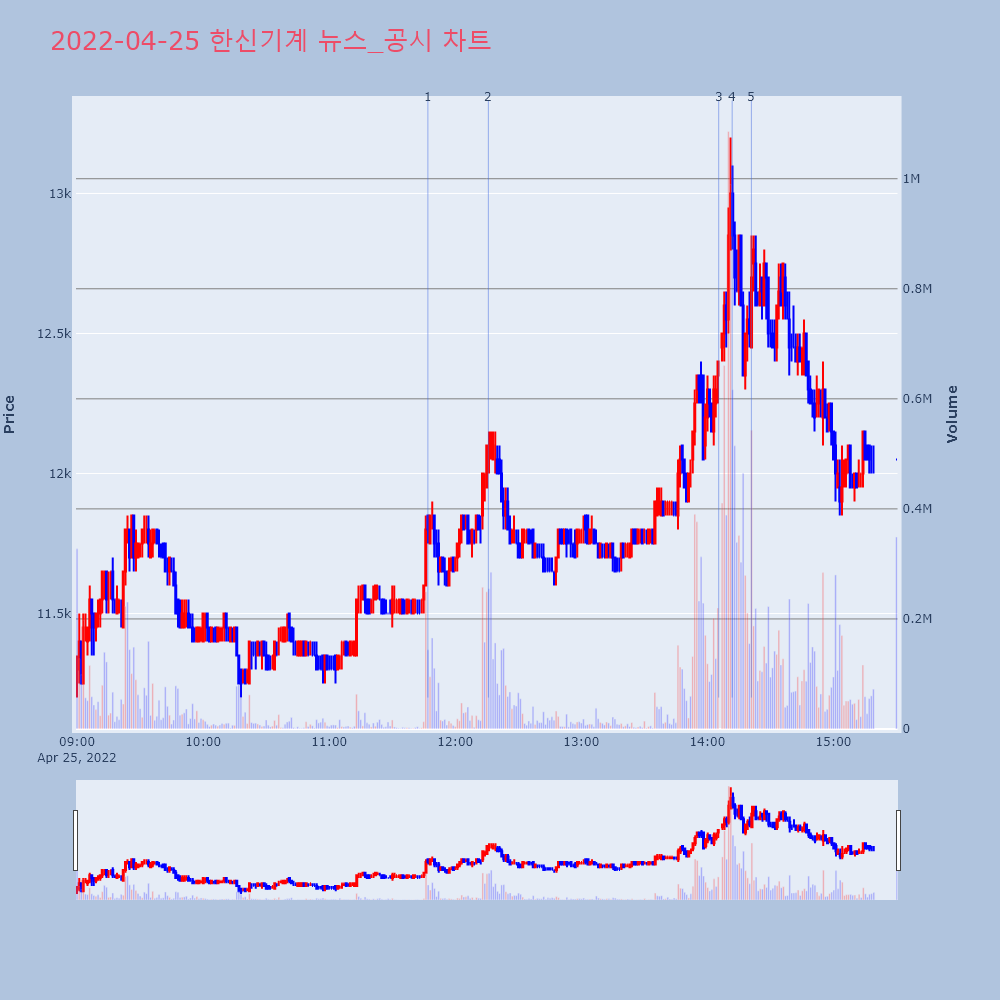 | 6 | '한신기계' 52주 신고가 경신, 단기·중기 이평선 정배열로 상승세◆ 차트 분석- 단기·중기 이평선 정배열로 상승세 | 한경/증권 | 한신기계 | 2022-04-25 15:33:11 |