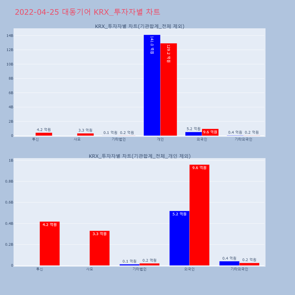 | 투자기관 | 거래량_매도 | 거래량_매수 | 거래량_순매수 | 거래대금_매도 | 거래대금_매수 | 거래대금_순매수 |