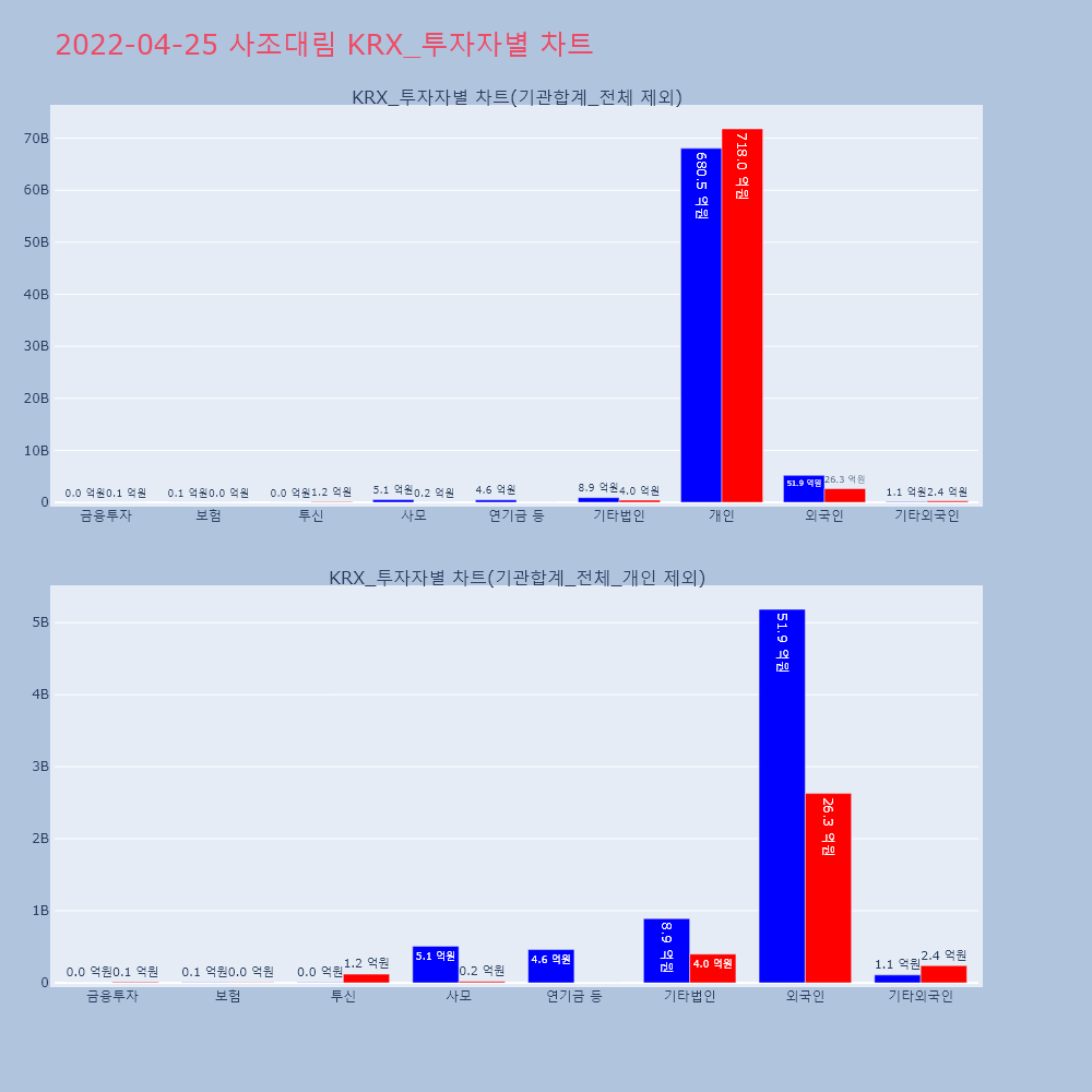 | 외국인 | 132,469 | 68,154 | -64,315 | 5,185,311,350 | 2,628,727,800 | -2,556,583,550 |