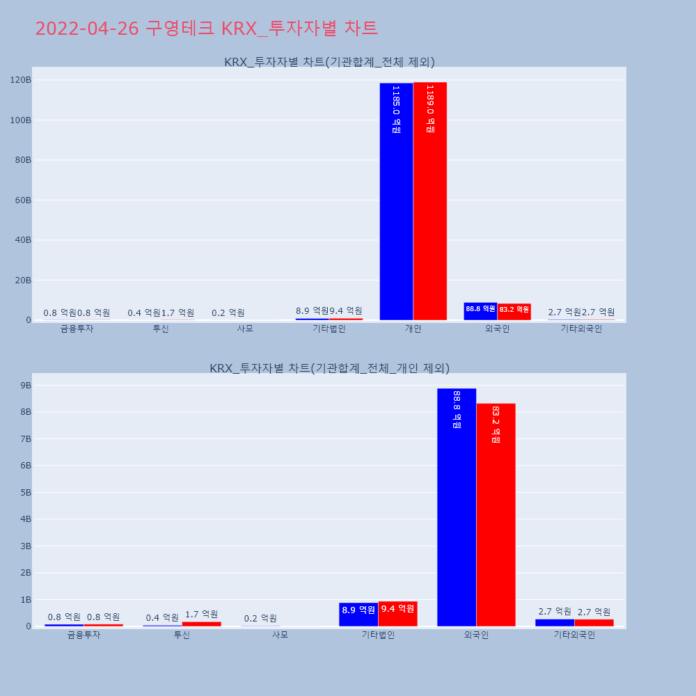 | 투자기관 | 거래량_매도 | 거래량_매수 | 거래량_순매수 | 거래대금_매도 | 거래대금_매수 | 거래대금_순매수 |