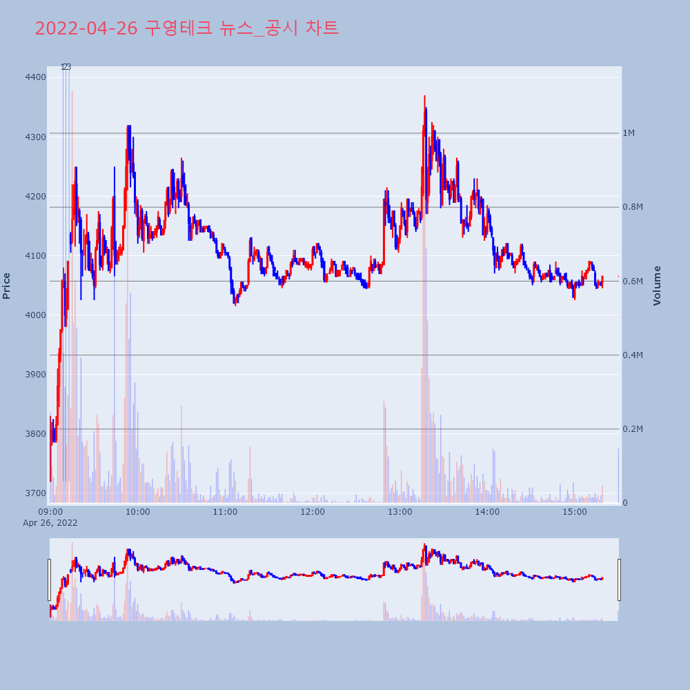 | 3 | 구영테크, +9.95% VI 발동구영테크(053270)가 VI가 발동했다. 전일 대비 | 조선경제 | 구영테크 | 2022-04-26 09:12:50 |