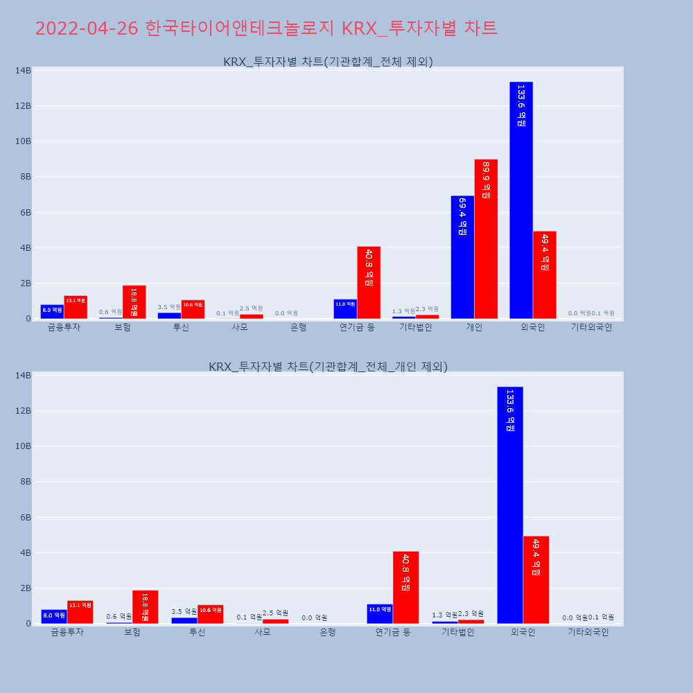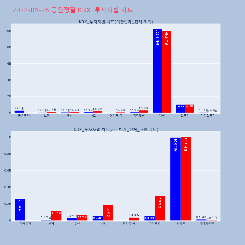 | 투자기관 | 거래량_매도 | 거래량_매수 | 거래량_순매수 | 거래대금_매도 | 거래대금_매수 | 거래대금_순매수 |