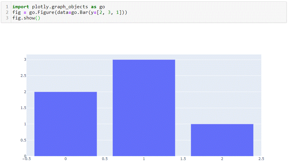 fig = go.Figure(data=go.Bar(y=[2, 3, 1]))