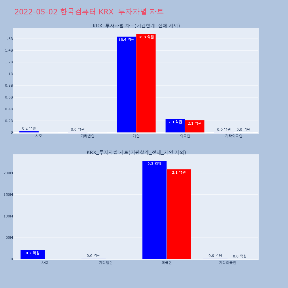 | 외국인 | 16,650 | 14,493 | -2,157 | 819,701,800 | 715,515,500 | -104,186,300 |