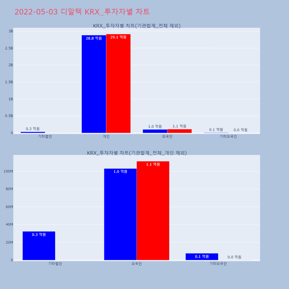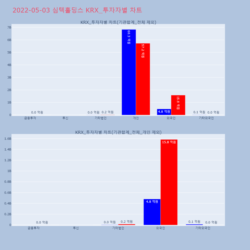 | 투자기관 | 거래량_매도 | 거래량_매수 | 거래량_순매수 | 거래대금_매도 | 거래대금_매수 | 거래대금_순매수 |