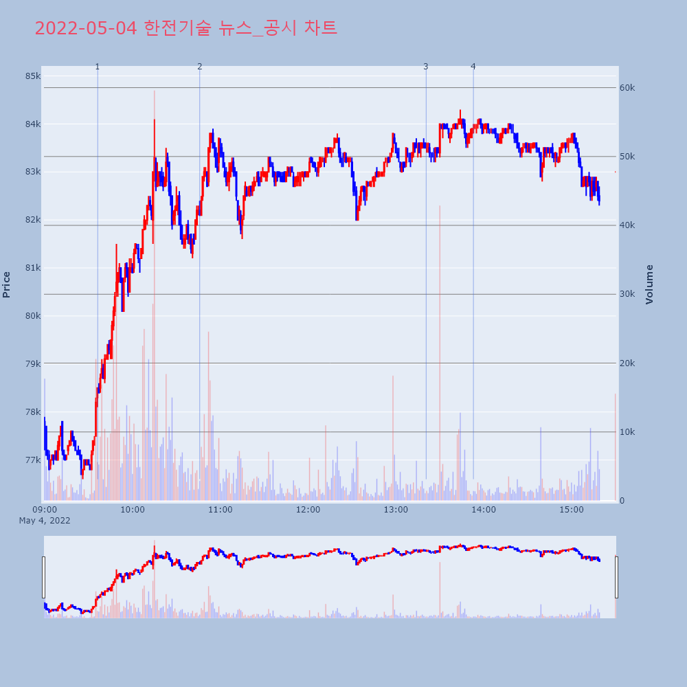 4 | [특징주] 한전기술, 탈원전 정책 폐기에 이틀째 강세… 10%↑ 제목 : [특징주] 한전기술, 탈원전 정책 폐기에 이틀 | 인포스탁 | 한전기술 | 2022-05-04 13:52:59 |