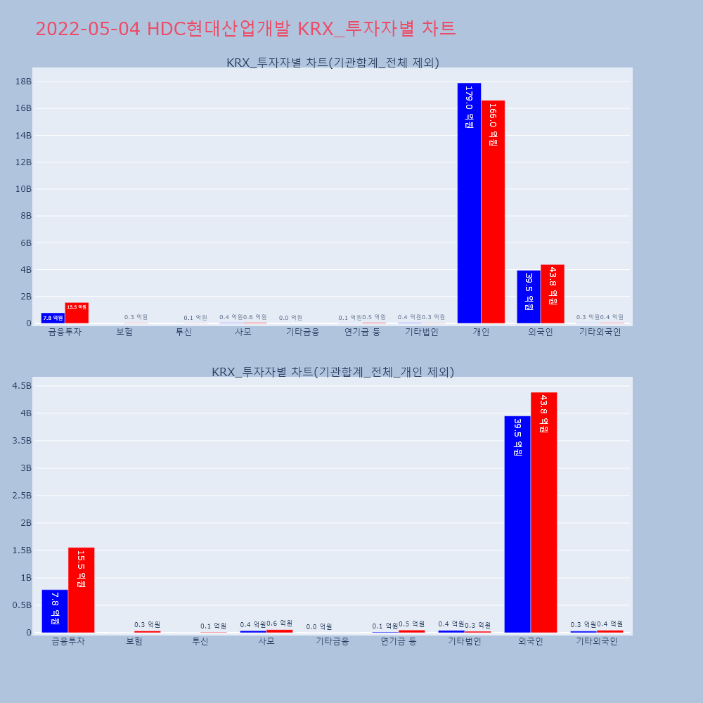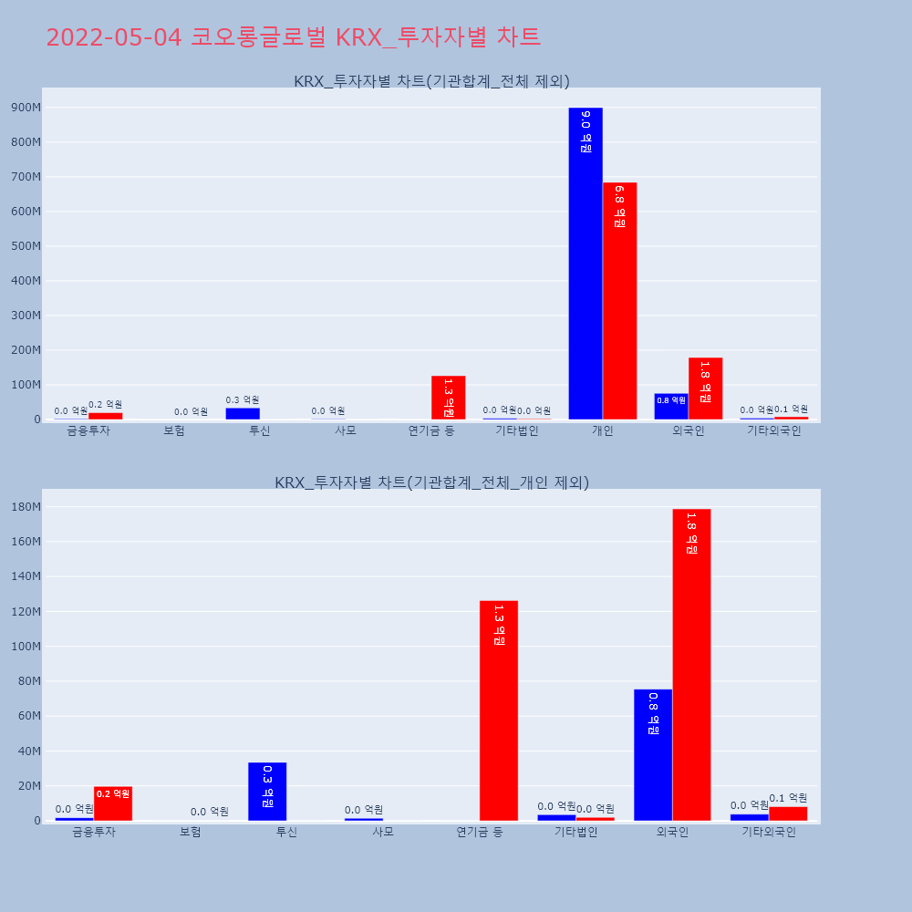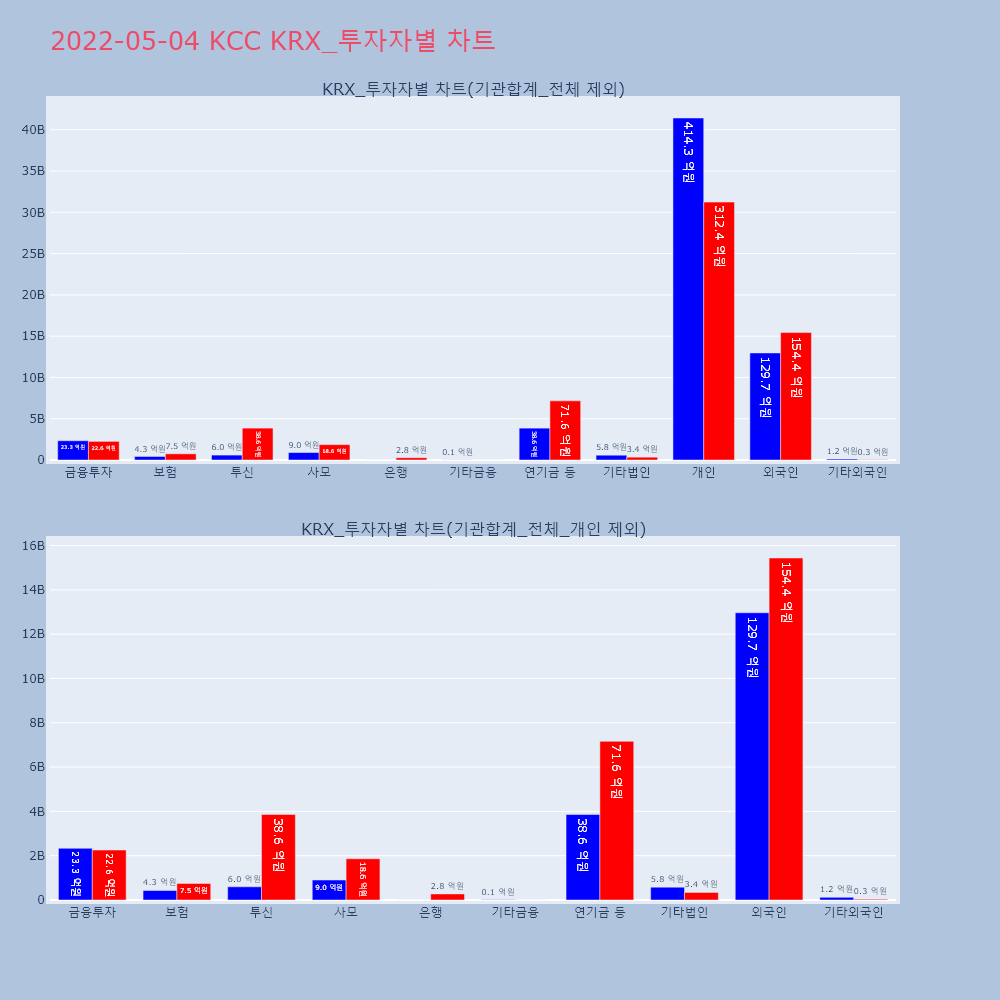 | 개인 | 41,293 | 39,054 | -2,239 | 10,397,455,500 | 9,817,006,000 | -580,449,500 |