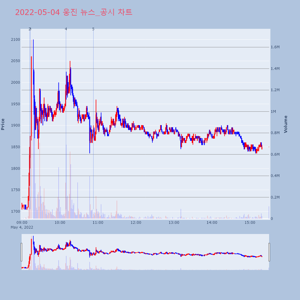| 3 | 웅진, +10.29% VI 발동웅진(016880)이 VI가 발동했다. 전일 대비 10 | 조선경제 | 웅진 | 2022-05-04 09:13:11 |
