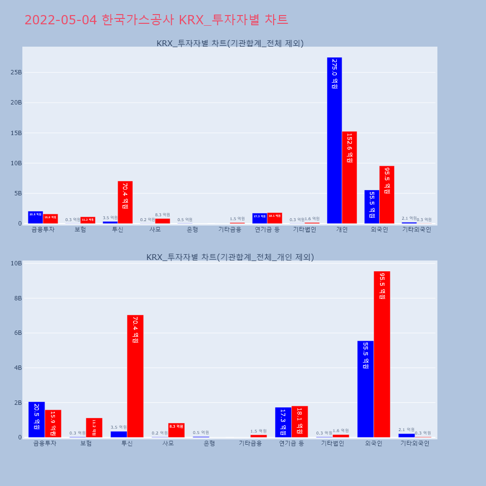 | 투자기관 | 거래량_매도 | 거래량_매수 | 거래량_순매수 | 거래대금_매도 | 거래대금_매수 | 거래대금_순매수 |
