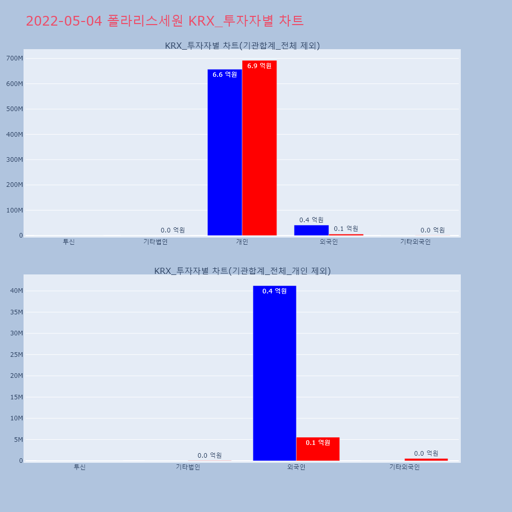 | 투자기관 | 거래량_매도 | 거래량_매수 | 거래량_순매수 | 거래대금_매도 | 거래대금_매수 | 거래대금_순매수 |