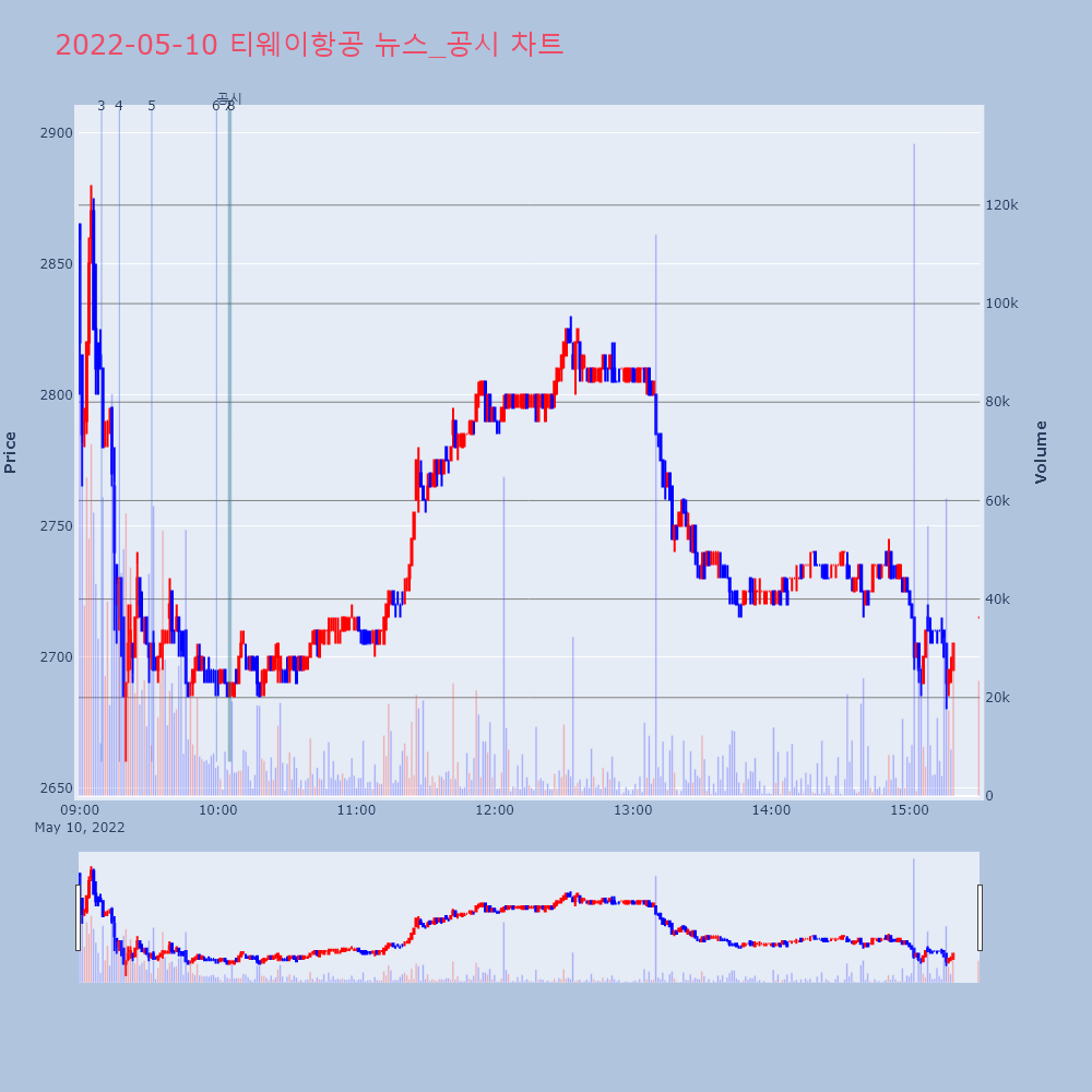 4 | [특징주]티웨이항공, 유상증자 신주 상장 앞두고 10%대 급락▶ 하이스탁론, 선취수수료 없는 월 0.2%대 최저금리 | 이데일리 | 티웨이항공 | 2022-05-10 09:17:11 |