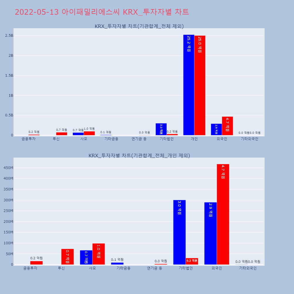 3 | 아이패밀리에스씨, +10.50% VI 발동아이패밀리에스씨(114840)가 VI가 발동했다. 전일 | 조선경제 | 아이패밀리에스씨 | 2022-05-13 14:51:12 |