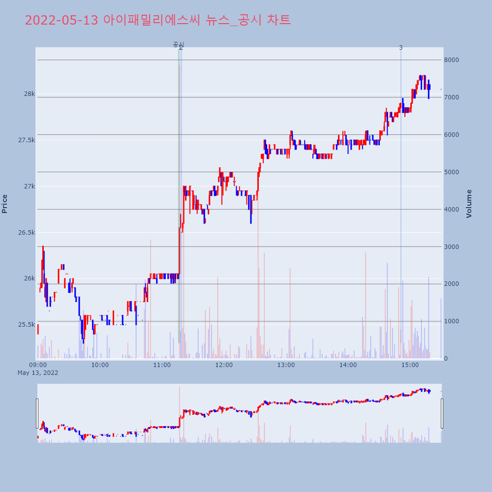 2 | 아이패밀리에스씨(114840) 소폭 상승세 +5.54% 제목 : 아이패밀리에스씨(114840)소폭 상승세 +5 | 인포스탁 | 아이패밀리에스씨 | 2022-05-13 11:18:55 |