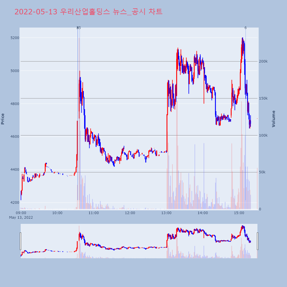 4 | 우리산업홀딩스, +13.68% VI 발동우리산업홀딩스(072470)가 VI가 발동했다. 전일 | 조선경제 | 우리산업홀딩스 | 2022-05-13 10:33:55 |