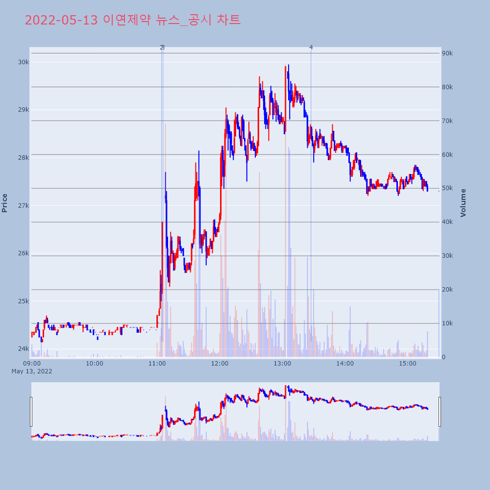 4 | [거래량 상위종목] 일진전기, 전일비 828.41%↑...그외 종목은?[버핏연구소=정채영 기자] 13일 오전 11시 26분 | 버핏연구소 | 일진전기 | 2022-05-13 11:37:19 |