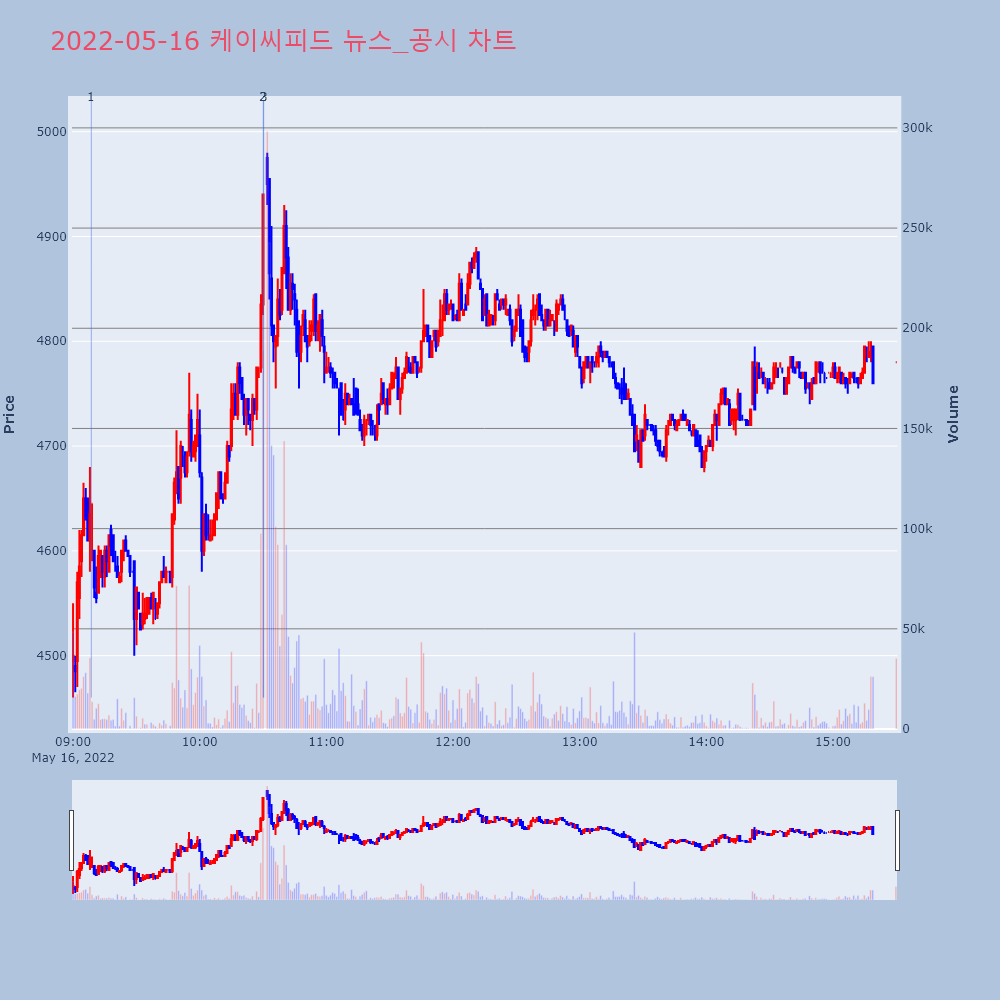 3 | 케이씨피드, +12.66% VI 발동케이씨피드(025880)가 VI가 발동했다. 전일 대비 | 조선경제 | 케이씨피드 | 2022-05-16 10:30:18 |