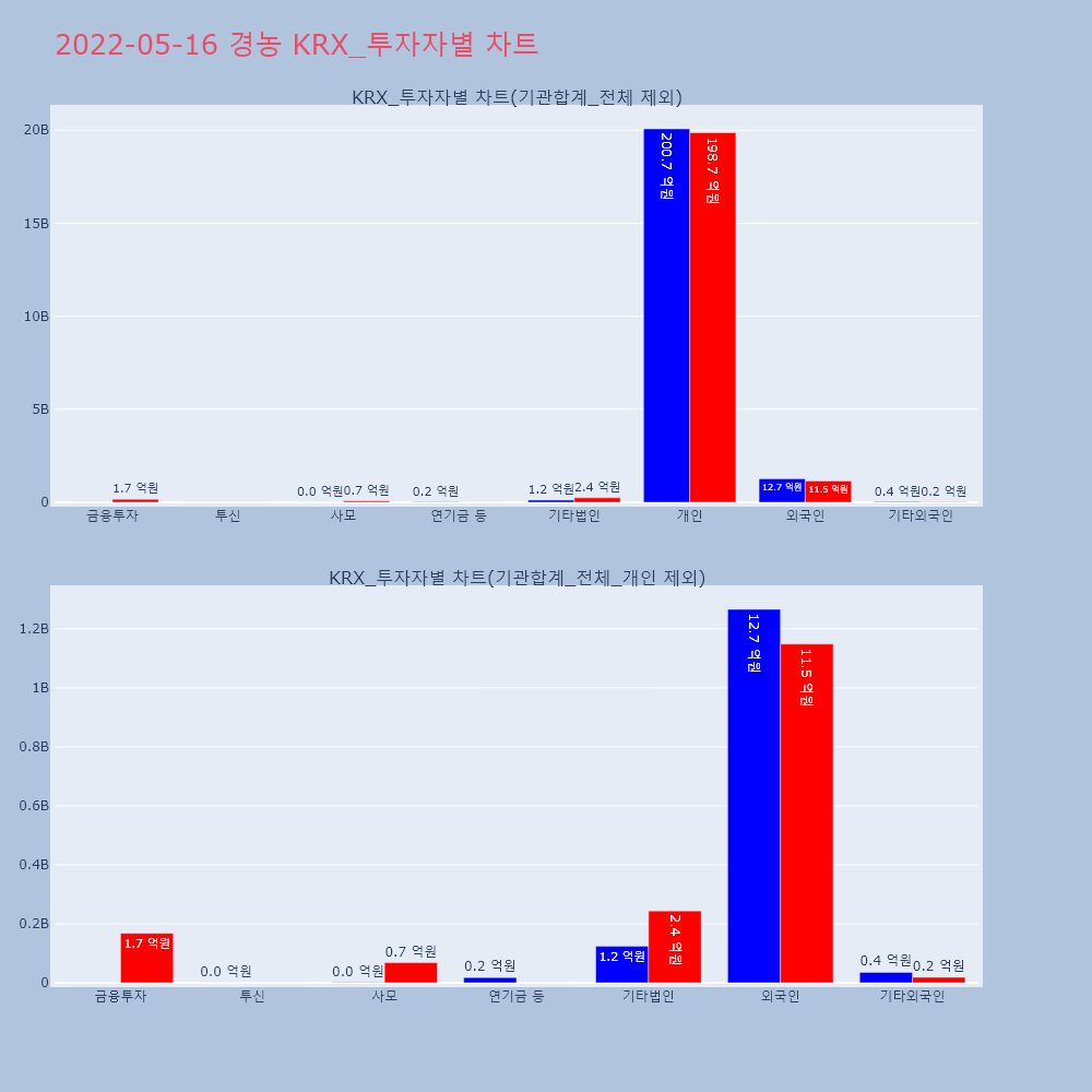 | 투자기관 | 거래량_매도 | 거래량_매수 | 거래량_순매수 | 거래대금_매도 | 거래대금_매수 | 거래대금_순매수 |