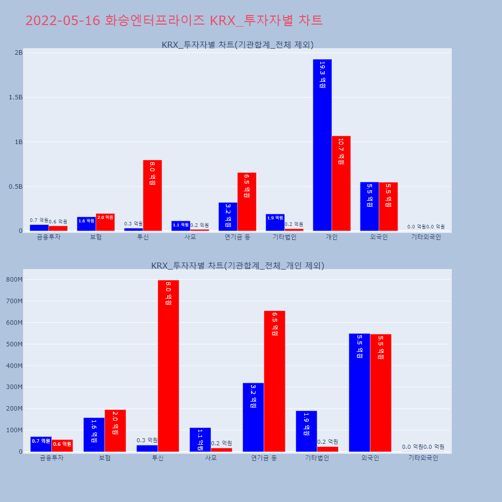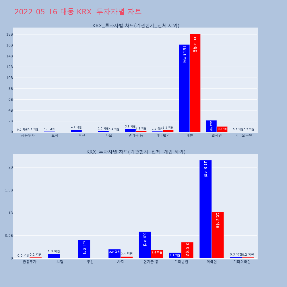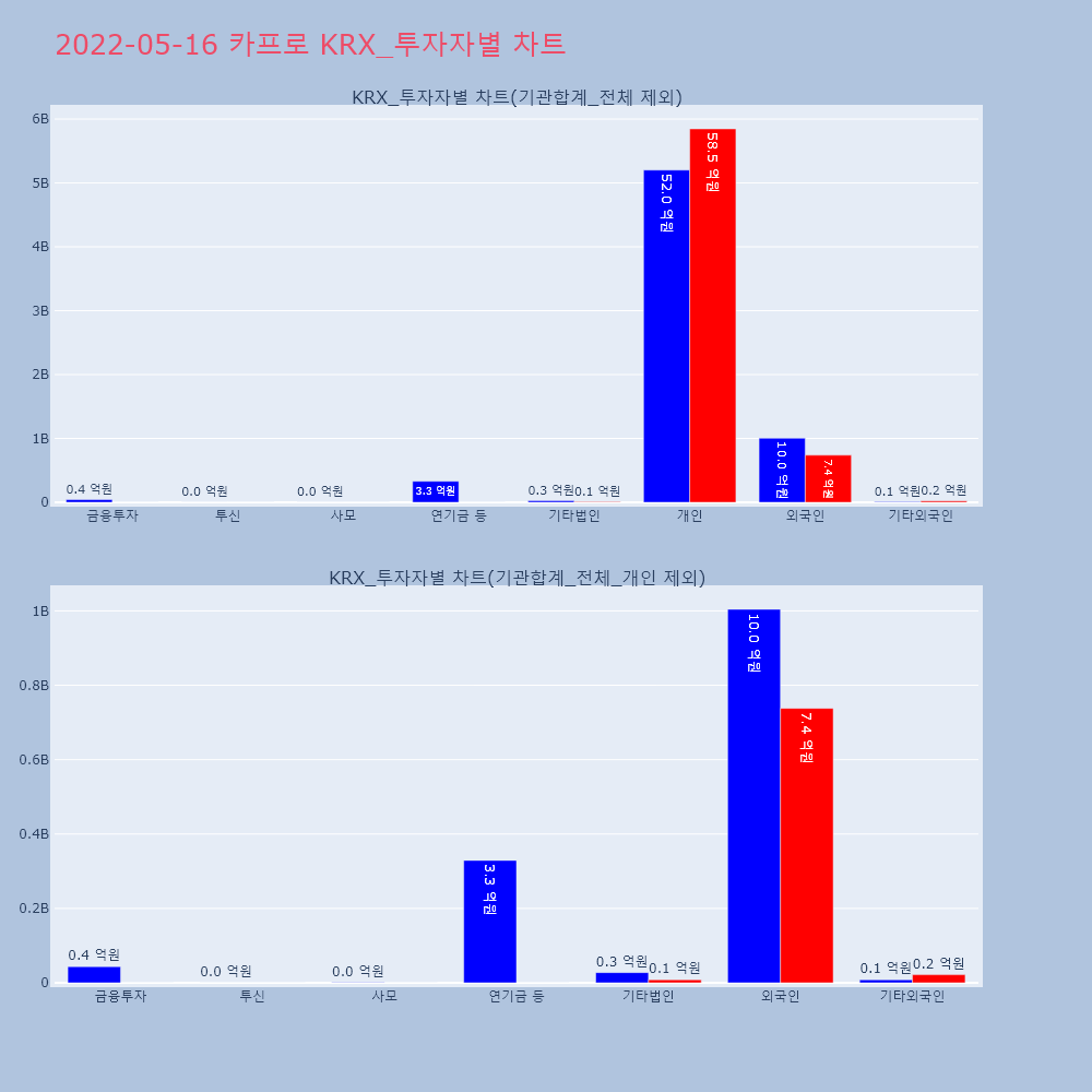 | 투자기관 | 거래량_매도 | 거래량_매수 | 거래량_순매수 | 거래대금_매도 | 거래대금_매수 | 거래대금_순매수 |