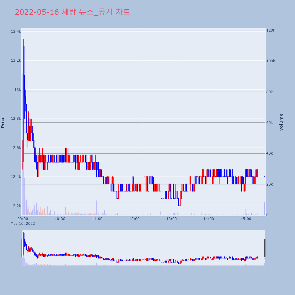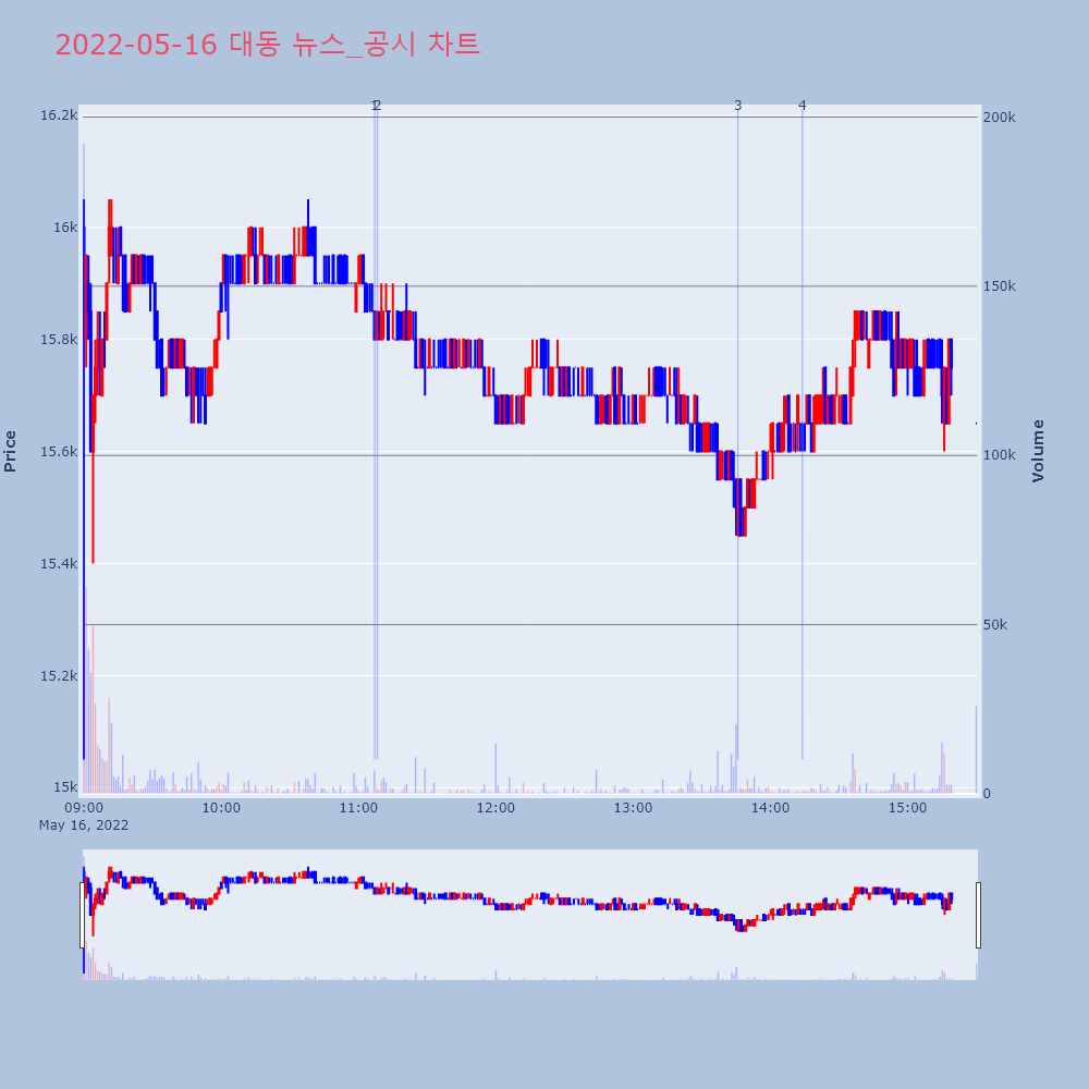 | 4 | 대성산업, +9.97% VI 발동대성산업(128820)이 VI가 발동했다. 전일 대비 | 조선경제 | 대성산업 | 2022-05-16 10:18:01 |