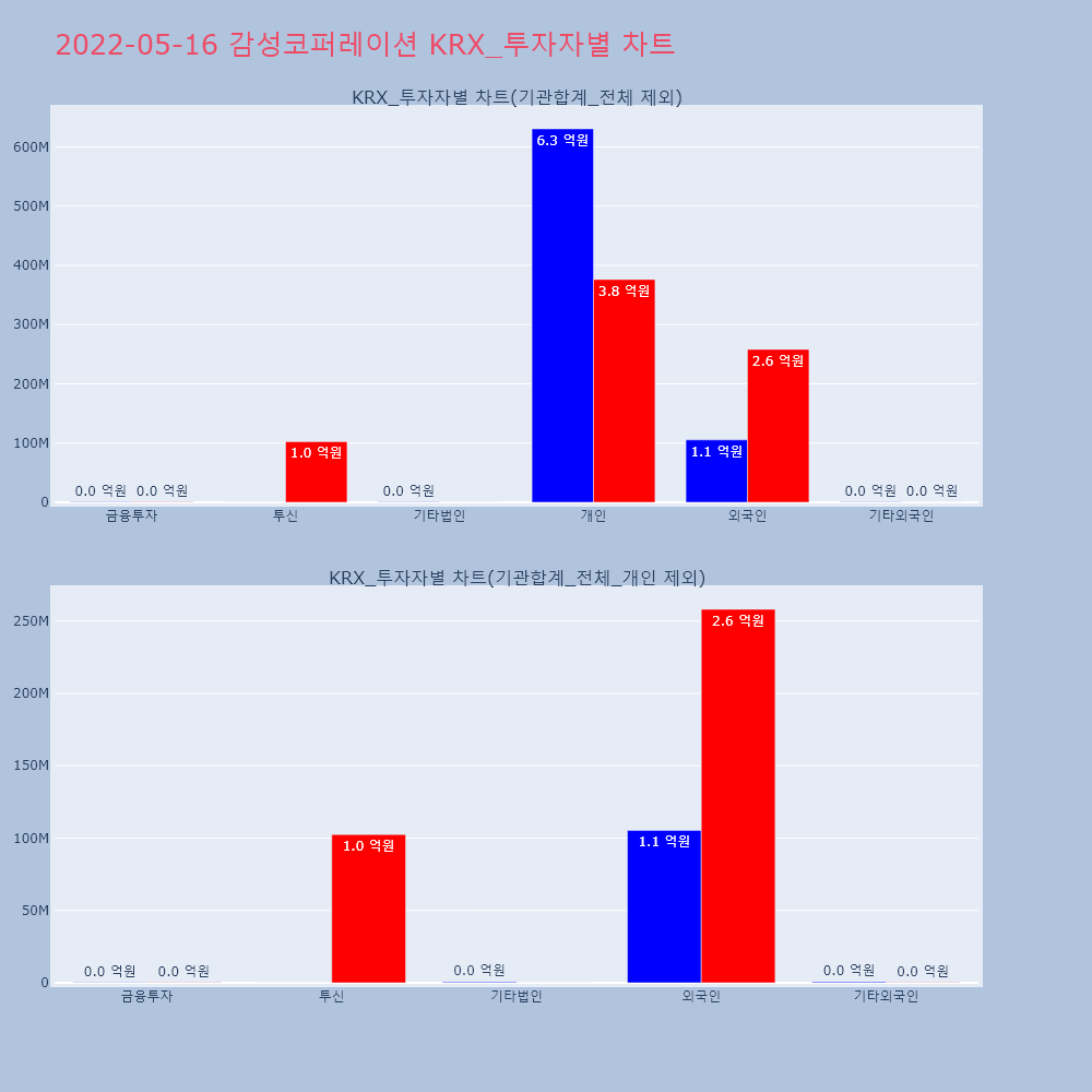 | 외국인 | 250,561 | 272,771 | 22,210 | 2,361,318,770 | 2,541,850,530 | 180,531,760 |